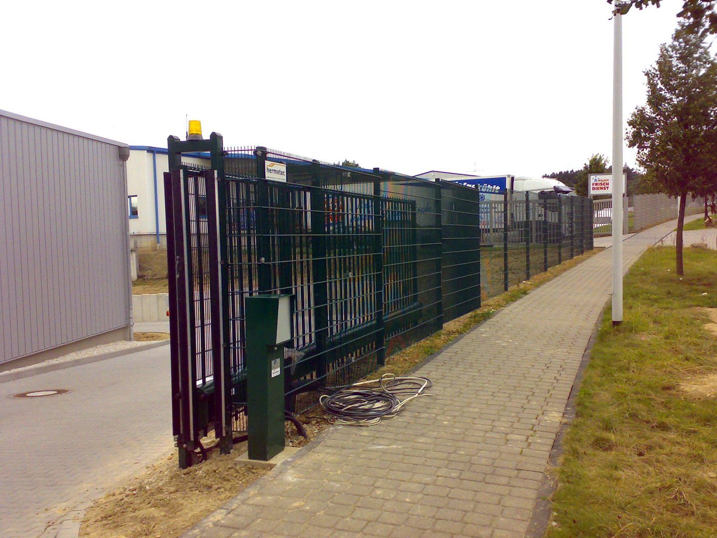hermetec trug den Teil zum Sicherheitskonzept auf höchstem Niveau bei. Hochwertiger Frontgitterzaun Typ Pegasus 200 in edlem grau. Einfahrten mit Breiten von: